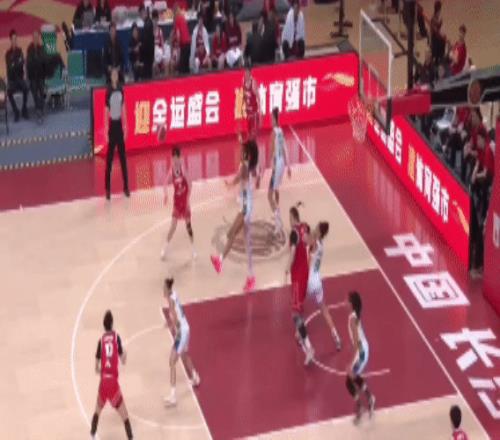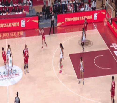楊舒予沖擊籃下助攻給到劉禹彤,后者強打籃下拿分。