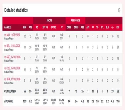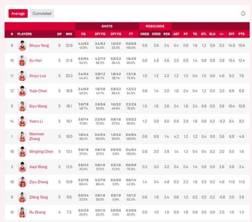 張子宇場均11分鐘,拿到11分4.8籃板0.2助攻0.2搶斷0.2蓋帽,命中率68.4%,很明顯張子宇的效率高得多,出場時間不足切霍娃的一半!