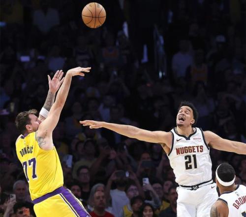 這一球點(diǎn)燃了湖人主場(chǎng)所有球迷的激情,現(xiàn)場(chǎng)響起山呼海嘯般的喝彩聲。掘金隊(duì)最后一攻由小哈達(dá)威出手不中。湖人將士們紛紛跑到東契奇身邊,圍著他慶祝這場(chǎng)來(lái)之不易的勝利。