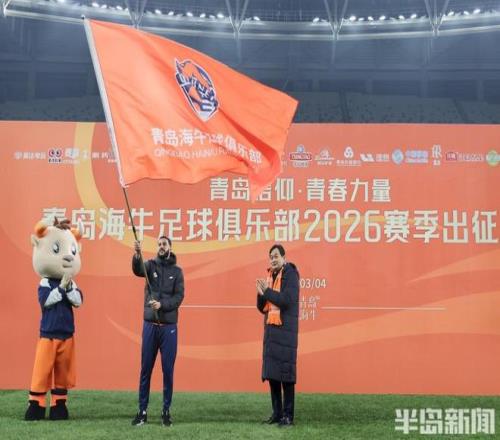 青島市人民政府副市長趙勝村在出征儀式上為海牛隊(duì)授旗出征,隊(duì)長梅薩烏迪接過大旗并用力揮舞。這標(biāo)志著海牛隊(duì)2026賽季中超征程正式開啟。根據(jù)賽程,海牛新賽季首場比賽將于本月7日奔赴昆明,客場挑戰(zhàn)云南玉昆,首個主場比賽會于3月20日上演,對手是實(shí)力不俗的浙江隊(duì)。